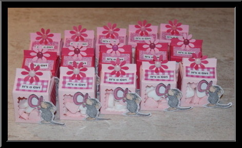 Het eerste gedeelte van de kraam bedankjes is af. Je bent er even mee bezig, maar het resultaat vind ik zelf wel erg leuk geworden. Ik moet in totaal 30 bedankjes maken.........ze wilde 15 van dit soort doosjes en 15 andere. daar ga ik van het weekend maar eens aan beginnen denk ik. Al heb ik nog tijd genoeg want de baby komt pas begin mei.